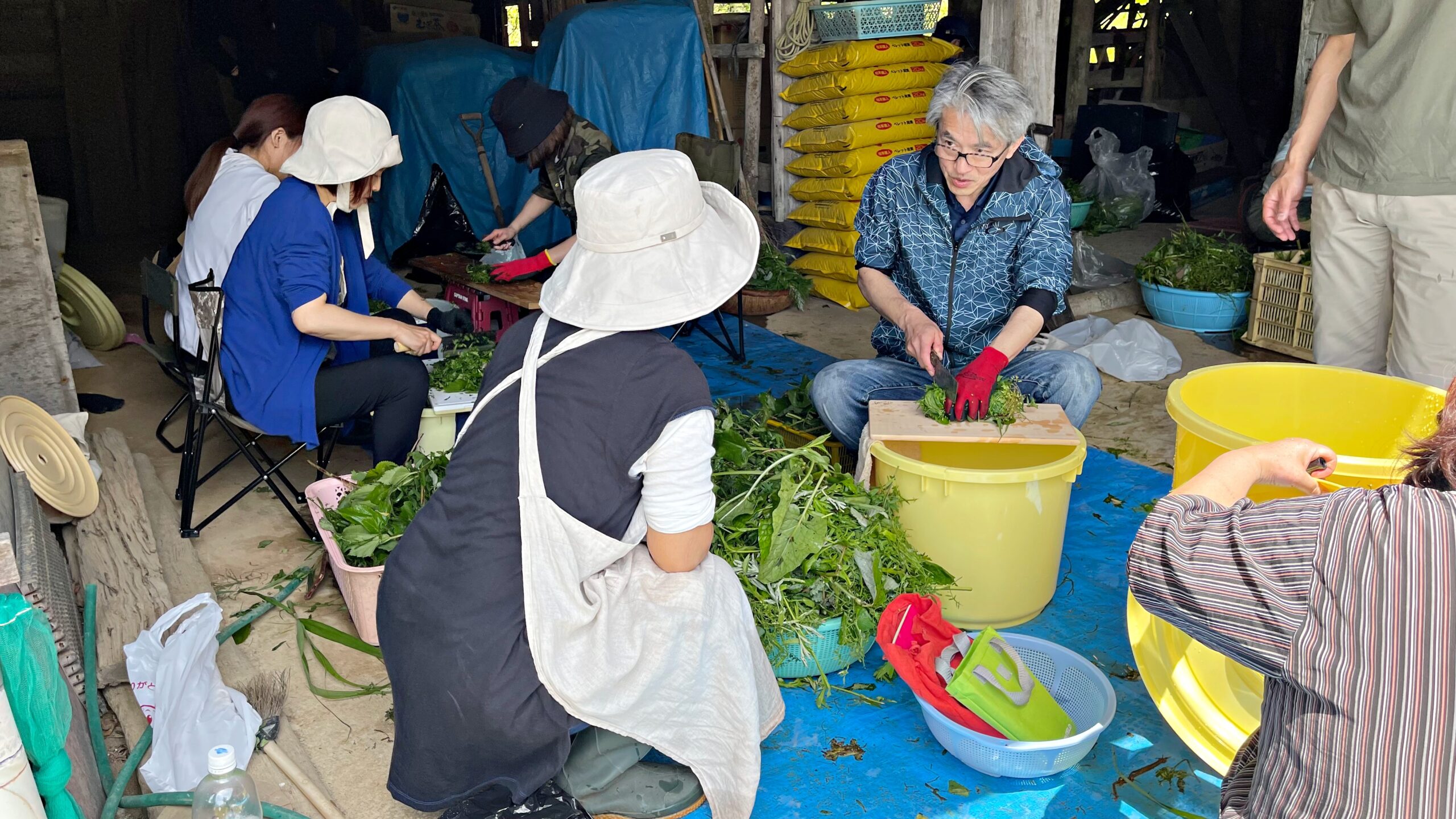 野草は6〜8割方採取しておきます。参加者で協力して野草摘みをしていただきます。